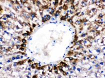 Immunohistochemistry: Mouse liver stained with ARG45138 anti-Cytochrome P450 1A2 antibody at 1 μg/ml dilution.
