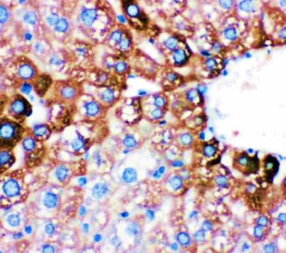 Immunohistochemistry: Rat liver stained with ARG45138 anti-Cytochrome P450 1A2 antibody at 1 μg/ml dilution.