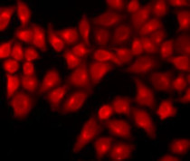 Immunofluorescence: MCF-7 cells stained with ARG57940 anti-DAO / D Amino Acid Oxidase antibody.