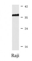 Western blot: 25 µg of Raji cell lysate stained with ARG57940 anti-DAO / D Amino Acid Oxidase antibody at 1:1000 dilution.