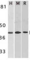 | 特异性 | This antibody recognizes human, mouse, and rat DAPK2 (approx. 42kDa) and does not cross-react with DAPK. |