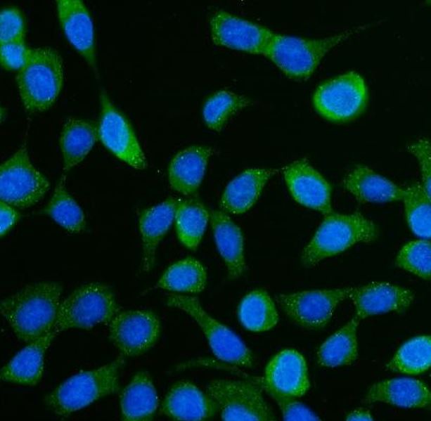 Immunofluorescence: CACO-2 stained with ARG45707 anti-DCP1A antibody at 5 μg/ml dilution.