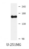 Western blot: 25 µg of U-251MG cell lysate stained with ARG40795 anti-DCTN1 / p150-glued antibody at 1:1000 dilution.