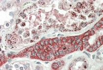 Immunohistochemistry: paraffin embedded Human Kidney. (Steamed antigen retrieval with citrate buffer pH 6) stained with ARG65153 anti-DCUN1D1 antibody at 5 µg/ml dilution followed by AP-staining.
