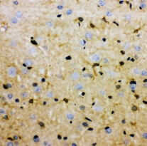 Immunohistochemistry: Mouse brain stained with ARG45478 anti-DDAH1 antibody at 1 μg/ml dilution.