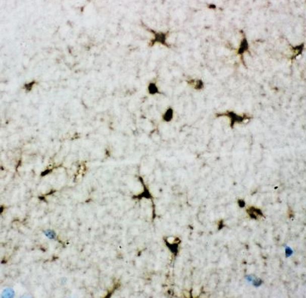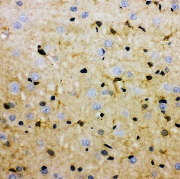 Immunohistochemistry: Rat brain stained with ARG45478 anti-DDAH1 antibody at 1 μg/ml dilution.