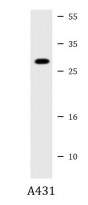 Western blot: 20 µg of A431 cell lysate stained with ARG59736 anti-DENR antibody at 1:1000 - 1:2000 dilution.