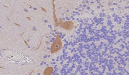 Immunohistochemistry: Human cerebellum stained with ARG44809 anti-DGK Zeta (Minor isoform) antibody at 5 µg/mL dilution.