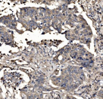 Immunohistochemistry: Human lung cancer stained with ARG45745 anti-DHPS antibody at 2 μg/ml dilution.