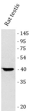Western blot: Rat testis stained with ARG45745 anti-DHPS antibody at 0.5 μg/ml dilution.
