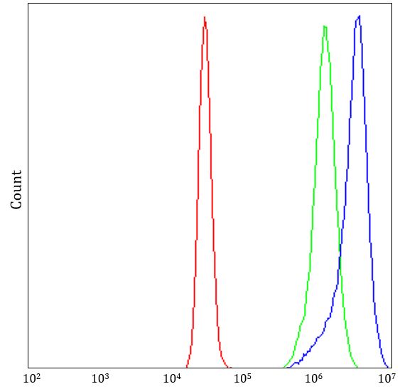 Flow Cytometry: K562 stained with ARG45632 anti-DIAPH1 antibody at 1 µg/10^6 cells dilution.