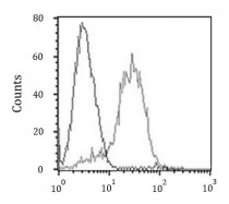 Flow Cytometry: HepG2 cells stained with ARG55228 anti-DLK1 antibody (right histogram) at 1:25 dilution or without primary antibodies (left histogram), followed by incubation with Alexa Fluor® 488 labelled secondary antibody.