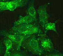 Immunofluorescence: HeLa cells stained with ARG41594 anti-DMD / Dystrophin antibody at 1:100 dilution.