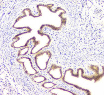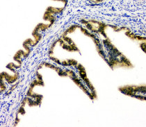 Immunohistochemistry: Paraffin-embedded Mouse ovary tissue. Antigen Retrieval: Heat mediation was performed in Citrate buffer (pH 6.0) for 20 min. The tissue section was blocked with 10% goat serum. The tissue section was then stained with ARG43127 anti-DOK7 antibody at 1 µg/ml dilution, overnight at 4°C.