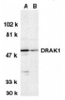 特异性 | This antibody recognizes human DRAK1 (50kDa). No cross-reactivity with DRAK2, DAP or ZIP kinases. |