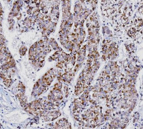 Immunohistochemistry: Human liver cancer stained with ARG45526 anti-E2F3 antibody at 2 μg/ml dilution.