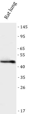 Western blot: Rat lung stained with ARG45526 anti-E2F3 antibody at 0.5 μg/ml dilution.