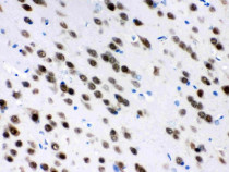 Immunohistochemistry: Paraffin-embedded Mouse brain tissue. Antigen Retrieval: Heat mediation was performed in Citrate buffer (pH 6.0) for 20 min. The tissue section was blocked with 10% goat serum. The tissue section was then stained with ARG42690 anti-ELAVL4 / HuD antibody at 1 µg/ml dilution, overnight at 4°C.