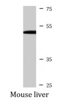 Western blot: 20 µg of Mouse liver lysate stained with ARG42641 anti-ENT1 antibody at 1:1000 dilution.