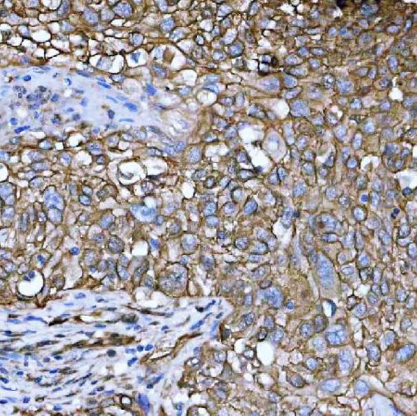 Immunohistochemistry: Human lung squamous cell carcinoma stained with ARG45248 anti-EPLIN antibody at 2 μg/ml dilution.