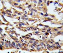 Immunohistochemistry: Formalin-fixed and paraffin-embedded Human lung carcinoma tissue stained with ARG43194 anti-Eg 5 antibody.
