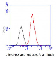 Flow Cytometry: LNCap cell line stained with ARG57167 anti-Enolase 1/2 antibody [1G7] at 2-5 µg for 1x10^6 cells (red line). Secondary antibody: Goat anti-Mouse IgG Alexa fluor 488 conjugate. Isotype control antibody: Mouse IgG (black line).