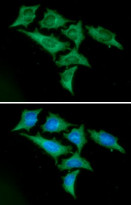 Immunofluorescence: HeLa cells line stained with ARG57167 anti-Enolase 1/2 antibody [1G7] at 1:100 (Green).