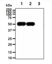 Western blot: 50 ng of 1) ENO1 (Alpha-enolase), 2) ENO2 (Gamma-enolase), and 3) ENO3 (Beta-enolase) recombinant proteins stained with ARG57167 anti-Enolase 1/2 antibody [1G7] at 1:1000.