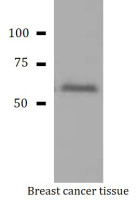 Western blot: Human breast cancer tissue lysate stained with ARG23195 anti-Estrogen Receptor beta b (beta 5 isoform) antibody [5/25].