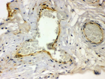 Immunohistochemistry: Formalin-fixed and paraffin-embedded Human placenta stained with ARG58136 anti-F2R / PAR1 antibody. Antigen Retrieval: Boil tissue section in 10mM Citrate buffer (pH 6.0) for 20 min followed by cooling at RT.