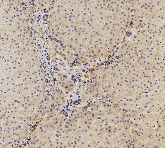 Immunohistochemistry: Human liver stained with ARG51706 anti-FAK phospho (Tyr397) antibody.