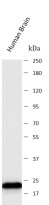 Western blot: Human Brain stained with ARG44659 anti-FGF12 antibody at 1 µg/mL dilution.