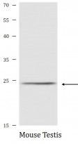 Western blot: 25 µg of Mouse Testis lysate stained with ARG43722 anti-FGF17 antibody at 1:1000 dilution.