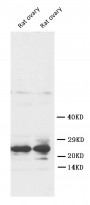 Western blot: Rat ovary tissue lysate stained with ARG58580 anti-FGF8 antibody.