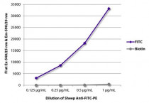 FLISA: The plate was coated with Goat anti-Human IgG antibody (FITC) and ARG21905 Goat anti-Human IgG antibody (Biotin) (pre-adsorbed). FITC and biotin conjugated antibodies were detected with serially diluted ARG22133 anti-FITC antibody (PE).
