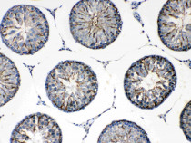 Immunohistochemistry: Paraffin-embedded Mouse testis tissue. Antigen Retrieval: Heat mediated was performed in Citrate buffer (pH 6.0, epitope retrieval solution) for 20 min. The tissue section was blocked with 10% goat serum. The tissue section was then stained with ARG59438 anti-FMN1 antibody at 1 µg/ml, overnight at 4°C.