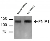 Western blot: 20 µg of Mouse Kidney and Rat Kidney lysates stained with ARG22626 anti-FNIP1 antibody at 1:1000 for 16 hours at 4°C.