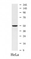 Western blot: HeLa cell lysate stained with ARG41686 anti-FOXA1 / HNF3A antibody [FHBA1-1].