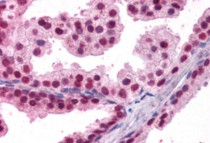 Immunohistochemistry: Paraffin-embedded Human prostate tissue. Antigen Retrieval: Steam tissue section in Citrate buffer (pH 6.0). The tissue section was stained with ARG63339 anti-FOXA2 / HNF3B antibody at 3.8 µg/ml dilution.