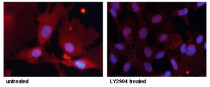 Immunofluorescence: methanol-fixed MEF cells untreated or treated with LY2904 stained with ARG51617 anti-FOXO1 / FKHR phospho (Ser256) antibody.
