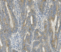 Immunohistochemistry: Paraffin-embedded Human rectum cancer tissue. Antigen Retrieval: Heat mediation was performed in EDTA buffer (pH 8.0). The tissue section was blocked with 10% goat serum. The tissue section was then stained with ARG43138 anti-FRMD6 / Willin antibody at 1 µg/ml dilution, overnight at 4°C.