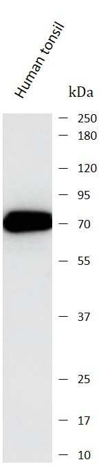 Western blot: Human tonsil stained with ARG44832 anti-GBP6 antibody at 1 µg/mL dilution.