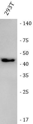 Western blot: 293T stained with ARG45960 anti-GCIP interacting protein p29 antibody at 0.5 μg/ml dilution.