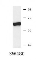 Western blot: 25 µg of SW480 cell lysate stained with ARG59094 anti-GLUT2 antibody at 1:1000 dilution.