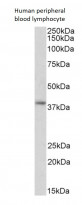 Western blot: 35 µg of Human peripheral blood lymphocyte lysates (in RIPA buffer) stained with ARG58910 anti-GNAI2 antibody at 2 µg/ml dilution and incubated at RT for 1 hour.