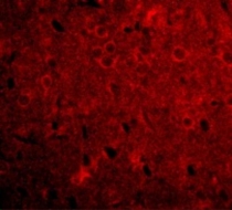 Immunohistochemistry: Rat Brain tissue stained with ARG56850 anti-GPAT1 antibody at 20 µg/ml dilution.