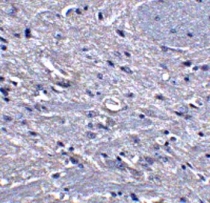 Immunohistochemistry: Mouse brain tissue stained with ARG56850 anti-GPAT1 antibody at 5 µg/ml dilution.