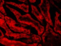 Immunohistochemistry: PFA-perfused cryosection of Pig kidney tissue stained with ARG63970 anti-GPX1 antibody at 20 µg/ml dilution.