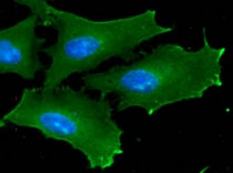 Immunoflorescense: HeLa cell line stained with ARG56920 anti-GSK3 beta antibody [1F7] at 1:100 (Green).