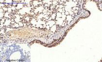 Immunohistochemistry: Paraffin-embedded Mouse lung tissue. Antigen Retrieval: Boil tissue section in Sodium citrate buffer (pH 6.0) for 20 min. The tissue section was stained with ARG66860 anti-GSK3 beta phospho (Ser9) antibody at 1:200 dilution, overnight at 4°C. Negative control was used by secondary antibody only.